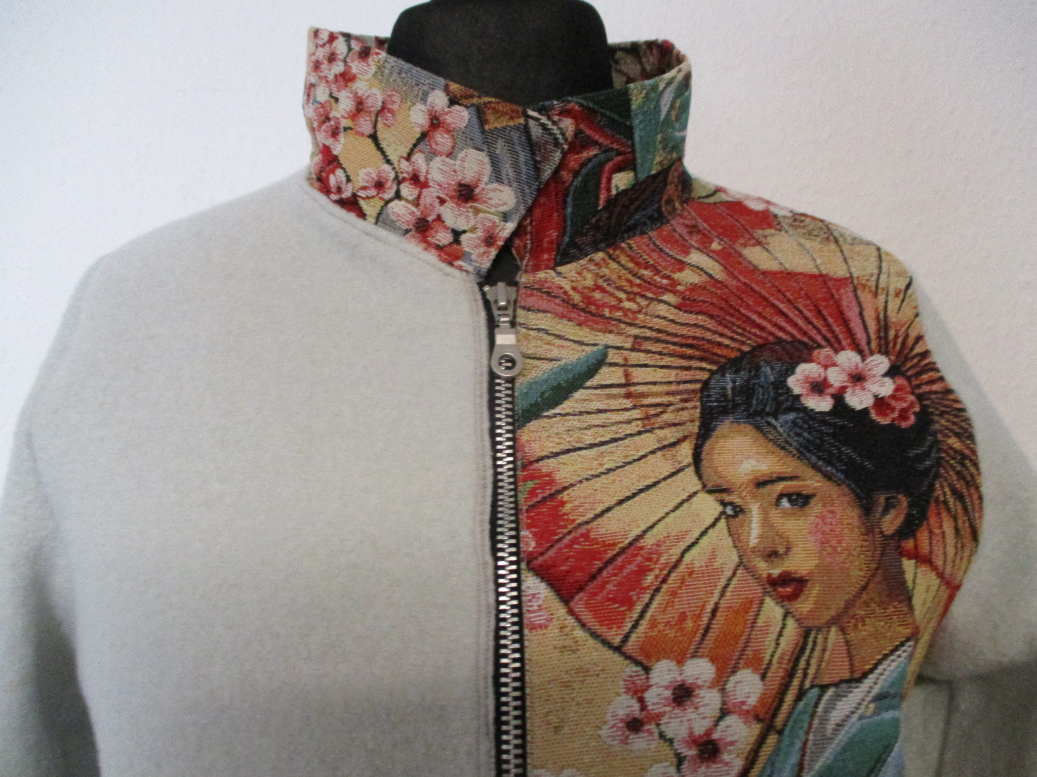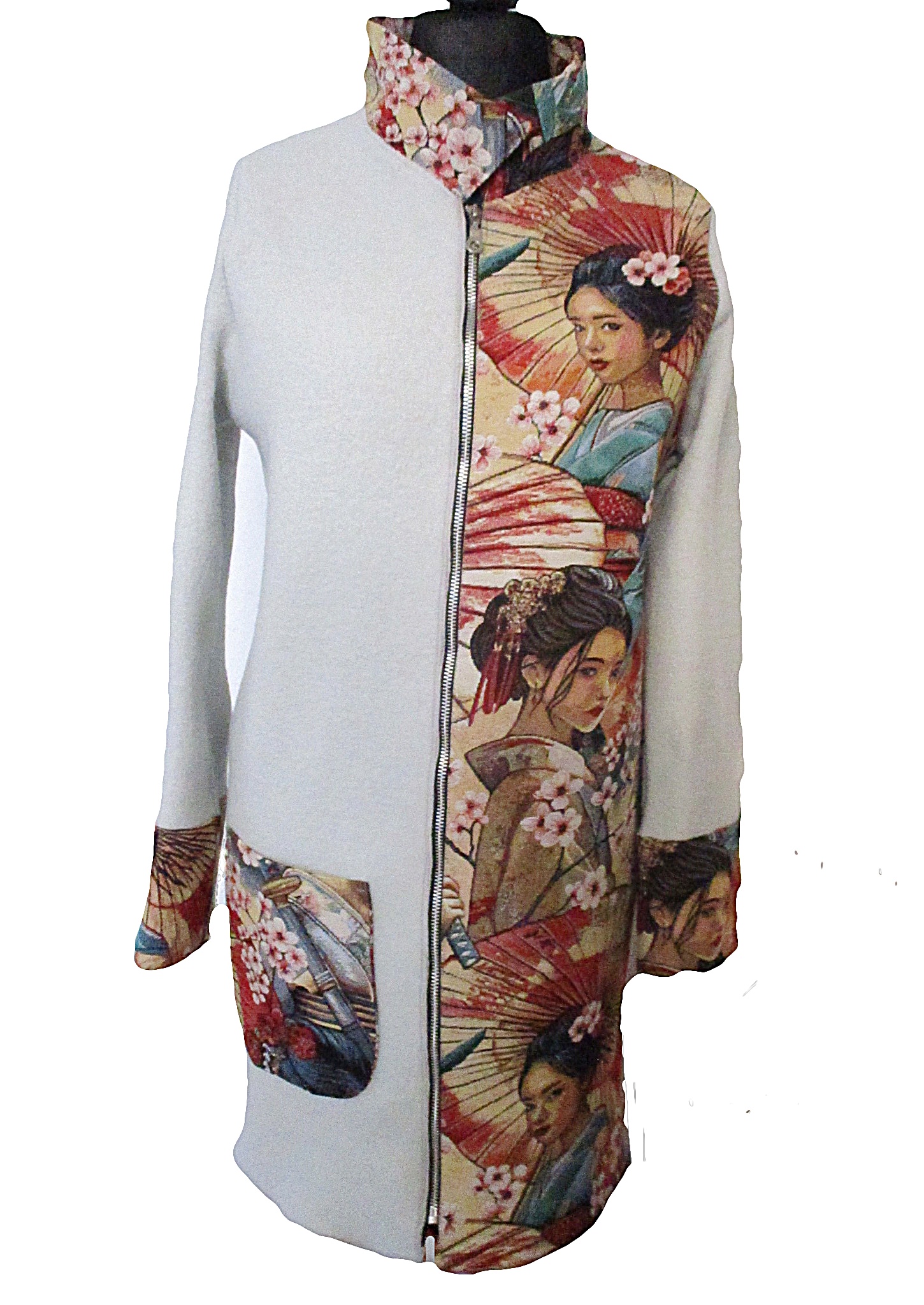 Passform: leger Länge: Knielang Ärmellänge: Extralanger Arm Ärmellänge: 65cm bei Größe 40 Rückenbreite: 35cm bei Größe 40 Gesamtlänge: 65cm bei Größe 40 Verschluss: Reissverschluss Farbe: weiss - ungefüttert Der Namsa Wollmantel hat eine schwarze Overlock / Cover- Gütermann Garnumrandung. Pflegehinweise:
